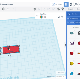 Press 'create', then press '3D designs'. Once you have done that, you press the 'search button', where you can search for objects which have already been entered, like a key ring or bookmark. Once you have done that, you get the 'search up text'. This is your chance to alter the object and play around with it.